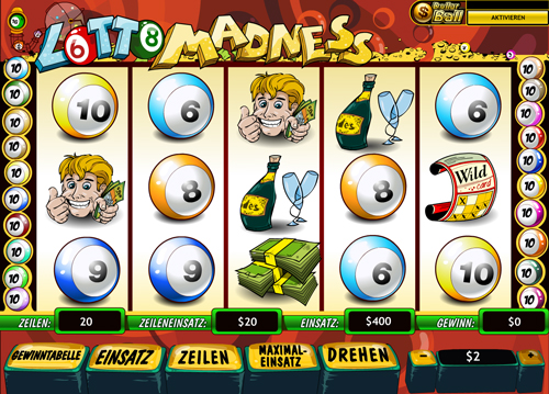 Lotto Madness ist sozusagen der online Slot für Lotto Spieler. Schließlich verbindet dieser die besten Eigenschaften aus beiden Glücksspielen. Auf den Walzen warten Lottozahlen und hohe Gewinne auf dich. Bis zu 200.000 Euro kannst du so auf einen Schlag abräumen. Und der Dollar Ball Jackpot wartet dann auch noch.