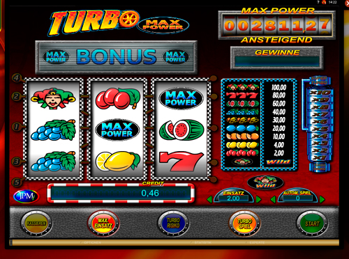 Dass es in diesem online Slot ein Joker Symbol gibt zeigt dann schon, dass es hier doch etwas anders zugeht. Und das wird noch besser, denn neben dem Turbo Spiel gibt es auch noch die Turbo Gewinne. Dank diesem Feature kannst du jeden Gewinn verzehnfachen. Hört sich das gut an? Dann solltest du dir erst einmal den Max Power Bonus anschauen. Wenn dieser nämlich startet kannst du so richtig abräumen. Der Hauptgewinn ist dann ein progressiver Jackpot.